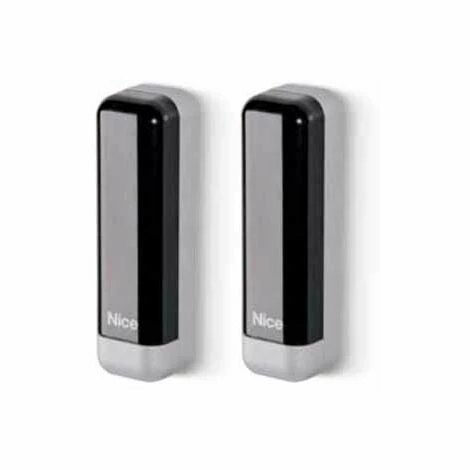 Fotozellenpaar SLIM fur aufputzmontage Nice EPS Sicher: Gerät Typ D nach EN12453, das zur Hinderniserkennung auf der optischen Achse zwischen Sender (TX) und Empfänger (RX) dient. Mit der Fototest-Funktion kann die Sicherheitskategorie 2 nach EN 954-1 erreicht werden. Bahnbrechende Technologie: Die Blendschutzschaltung beseitigt mögliche Störungen des Sonnenlichts. Praktisch: Empfangswinkel 10°.Die Modelle EPM, EPMO, EPMA und EPMAO gestatten 2 Reichweiten. Widerstandsfähig, auch in aufbruchsicherer Ausführung: Gehäuse aus witterungsbeständigem ABS. Technische Eigenschaften
