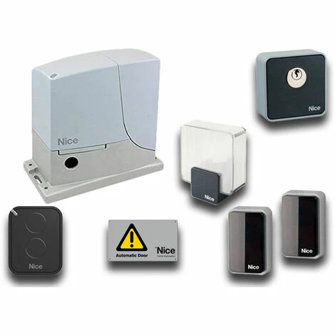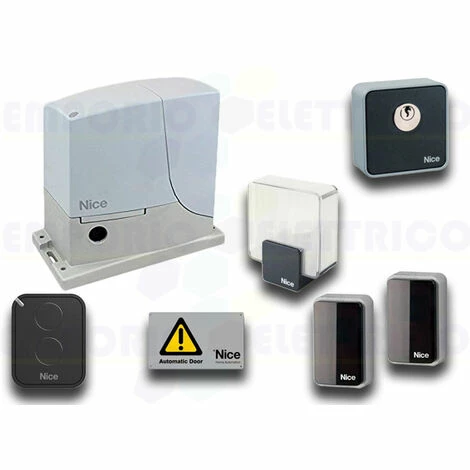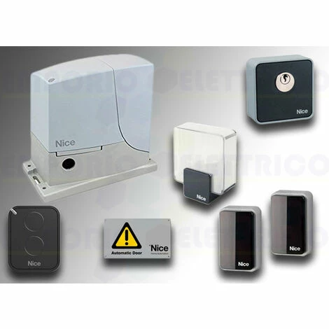 NICE – AUTOMATION KIT FÜR SCHIEBETORE BIS ZU 600 KgMIT STEUERUNG UND FUNKEMPFÄNGER INBEGRIEFFEN. AUCH KOMPATIBEL MIT DER FLO- UND SMILO-SERIESPANNUNGSVERSORGUNG: 230 VacNICE ROX600KCE UMFASST:- 1 ROX600 Getriebemotor mit elektromechanischem Endschalter für Tore bis zu 600 Kg, mit Steuerung und Funkempfänger inbegriffen- 1 FLO2RE 433,92 Mhz 2-Kanal-Sender- 1 EPM Lichtschrankenpaar für Aufputzmontage- 1 EKS Schlüsseltaster für Aufputzmontage- 1 ELAC LED-Blinklicht mit integrierter Antenne- 1 TS Warnschild