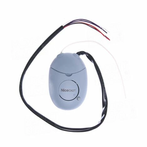 OX2-Empfänger mit integriertem 4-Kanal-Sender zur Steuerung aller Arten von Automatisierungen und Motoren für Tore und Garagentore. Kompatibel mit den Fernbedienungen FloR-S, One, Inti, Era One, NiceWay. Technische Daten OX2: – Empfangsfrequenz 433.92 MHz – Eingangsimpedanz 52 Ohm – Dekodierung O-code, Flor-s, flo – 2 Kanäle mit Relais mit trockenem Kontakt NO – Maximaler Relaiskontakt (0.5 A) – Stromversorgung 12-24 Volt Vac/Vdc