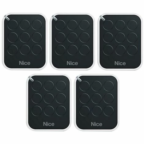 Set mit 5 fernbedienungen NICE ON9E, schwarz, 9 tasten, frequenz 433,92 Mhz.