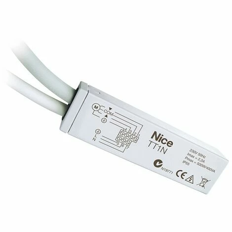 Steuerzentrale für die Durchsteckinstallation für 1 230 Vac Motor bis 500 W, mit integriertem Funkempfänger. Durchsteckinstallation, Schutzart IP55, mit integriertem 433,92 MHz Funkempfänger. Selbstlernfunktion für Sender der Serien NiceWay, Flo, Very, Planotime, FloR und Smilo.